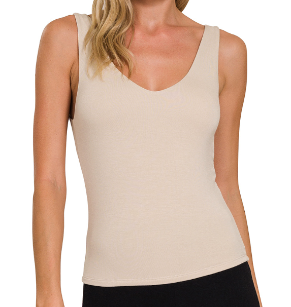 PREMIUM RAYON DOUBLE LAYERED V-NECK TANK TOP