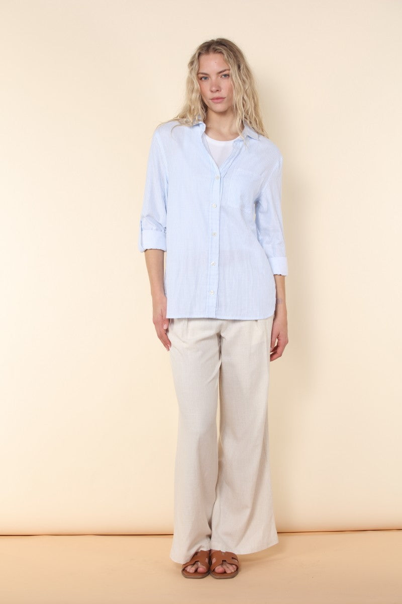 Regular Size Shirt R43793 Gauze Fabric Front Chest Pocket Button Down Closure Stripe Print Model Size: Height: 5'11" / Bust: 34" / Waist: 25" Model Is Wearing Size: Small Chest: 39 1/2" Length: 28 3/4"