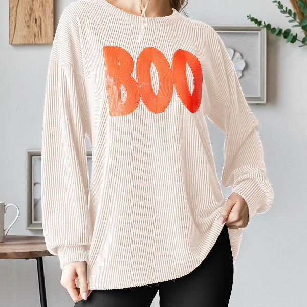 95% POLYESTER 5% SPANDEX LONG PUFF SLEEVE V NECK SOLID URBAN RIBBED SEQUINS HALLOWEEN PATCH top
