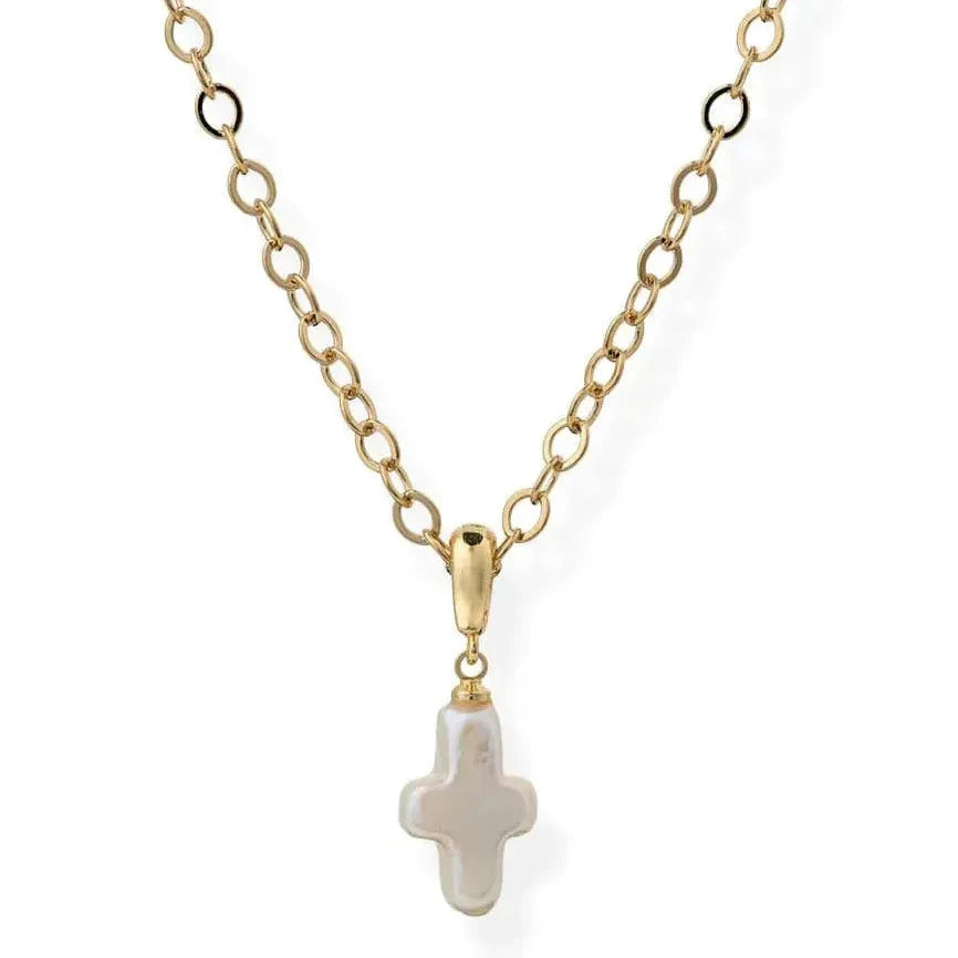 The Grace Cross Necklace features delicate freshwater pearl cross set on a gold-filled chain, offering a subtle yet elegant touch for everyday wear. Its refined design makes it an ideal layering piece, effortlessly complementing other jewelry while adding a graceful, timeless charm to any outfit.