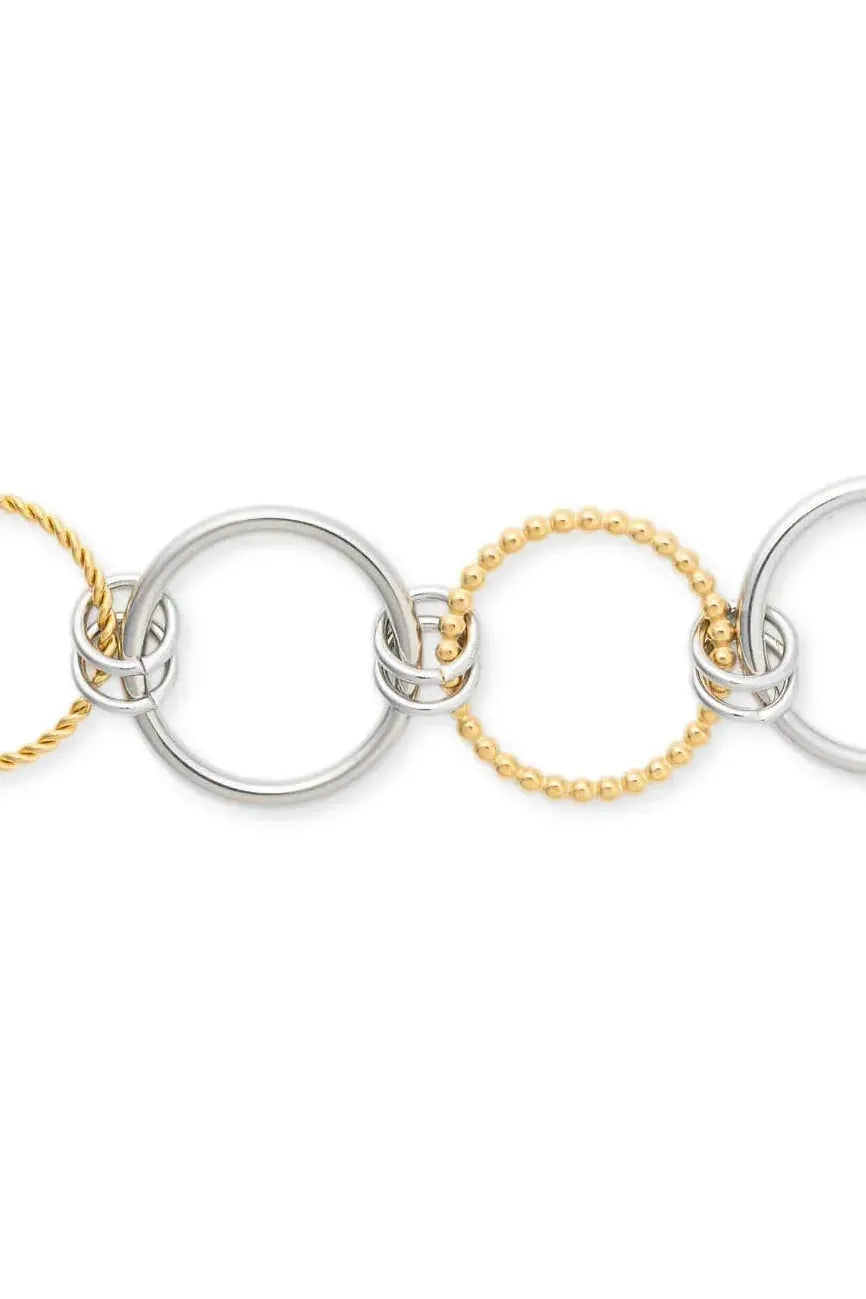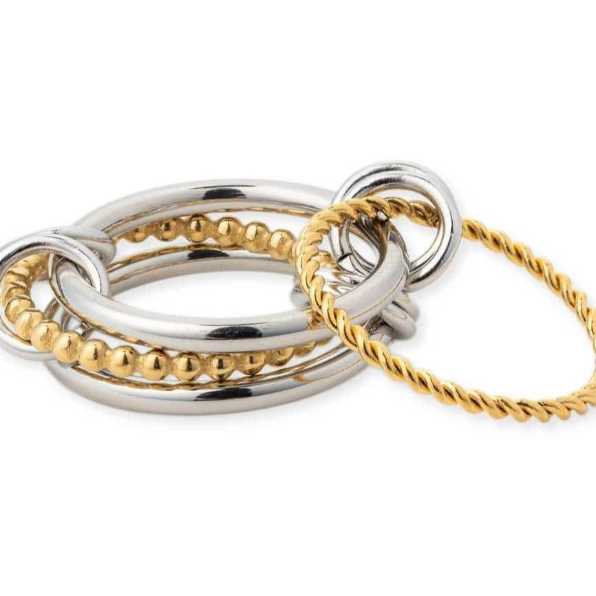 - Mixed metals: gold-plated rope twist + silver bands