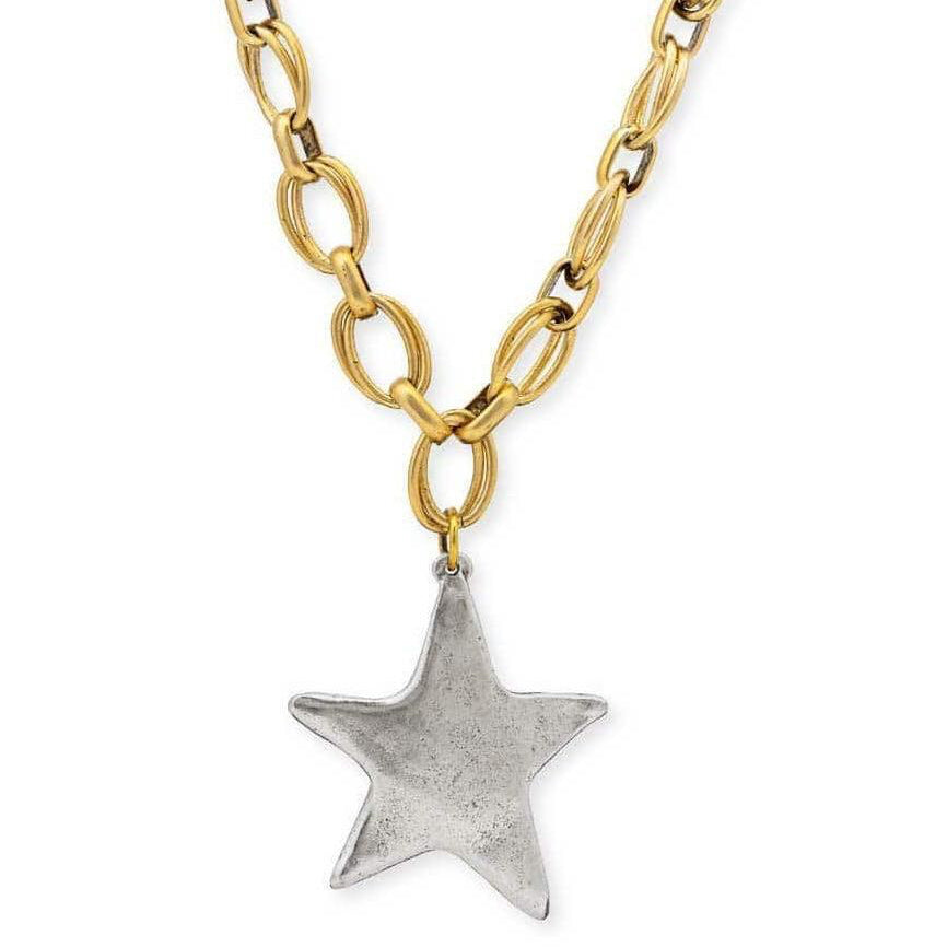 Inspired by our bestselling Star Shine Necklace, this two-tone version blends silver and antique gold into one bold, radiant statement. It's the perfect balance of contrast and shine made to stand out and layer effortlessly.