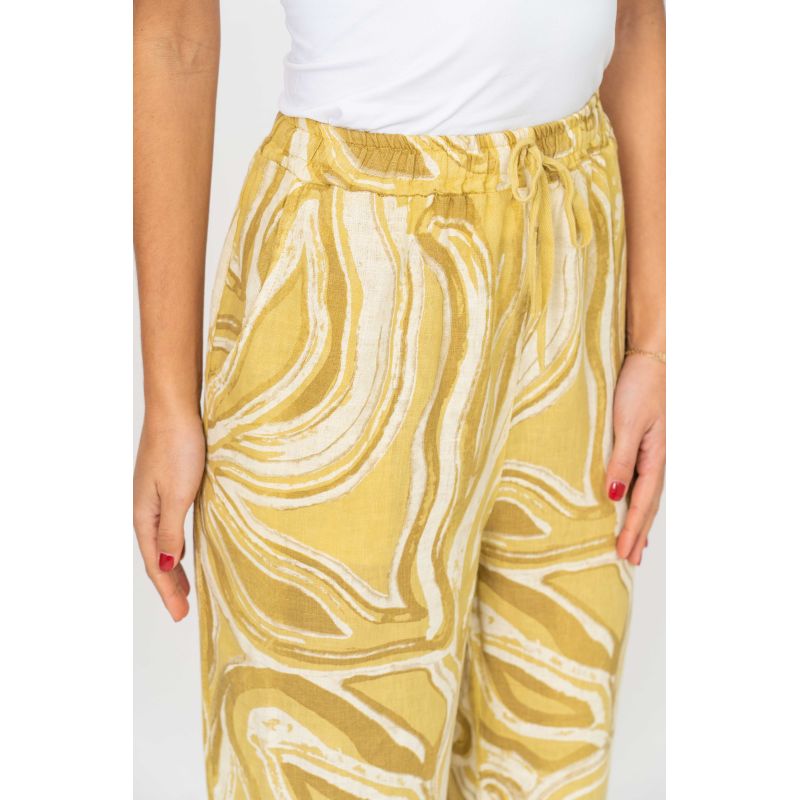 Abstract Print Linen Pant, elastic waistband