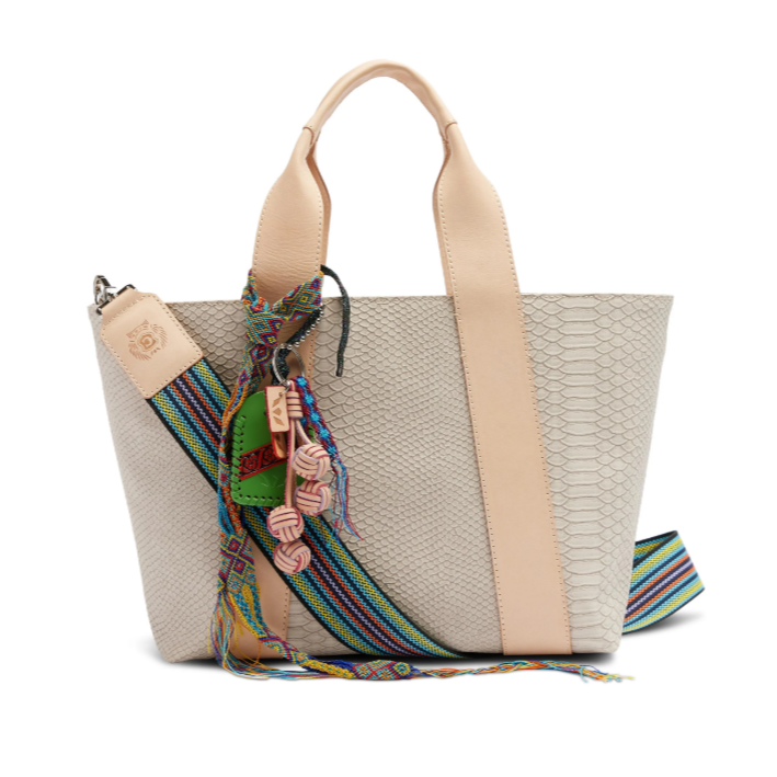 - Natural leather handles and trim