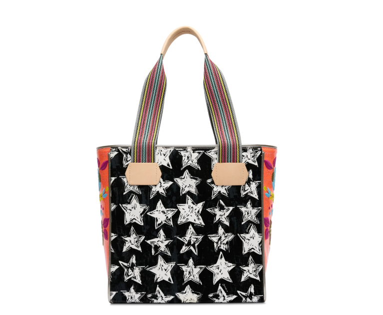 Our Classic Tote is perfect for life-on-the-go and it packs a statement in ConsuelaCloth™. Topped with comfortable woven handles, this multi-functional tote is trimmed in natural leather and crafted to hold its shape. Our tote features a roomy interior and pockets; ideal for carrying your laptop, keys, and phone.