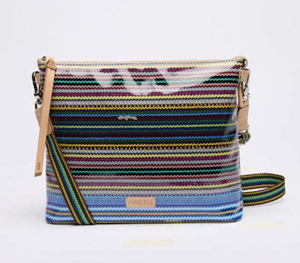 - Included detachable wristlet strap and adjustable woven crossbody strap