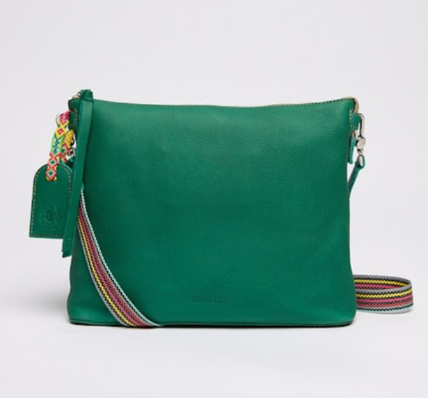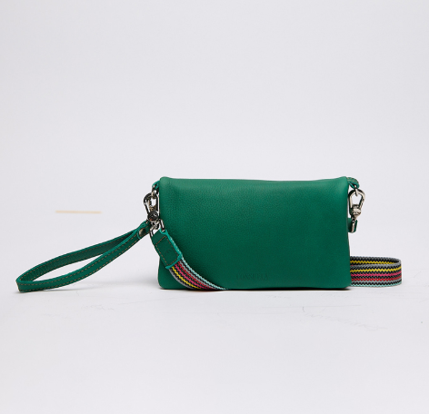 - Included detachable wristlet strap and adjustable woven crossbody strap
