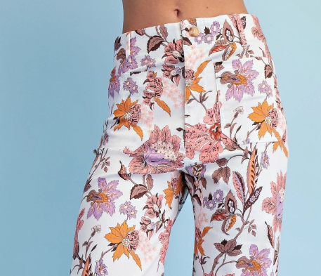 Floral Ankle Cropped Pants in a Stretchy Denim-Like Fabric with Pockets