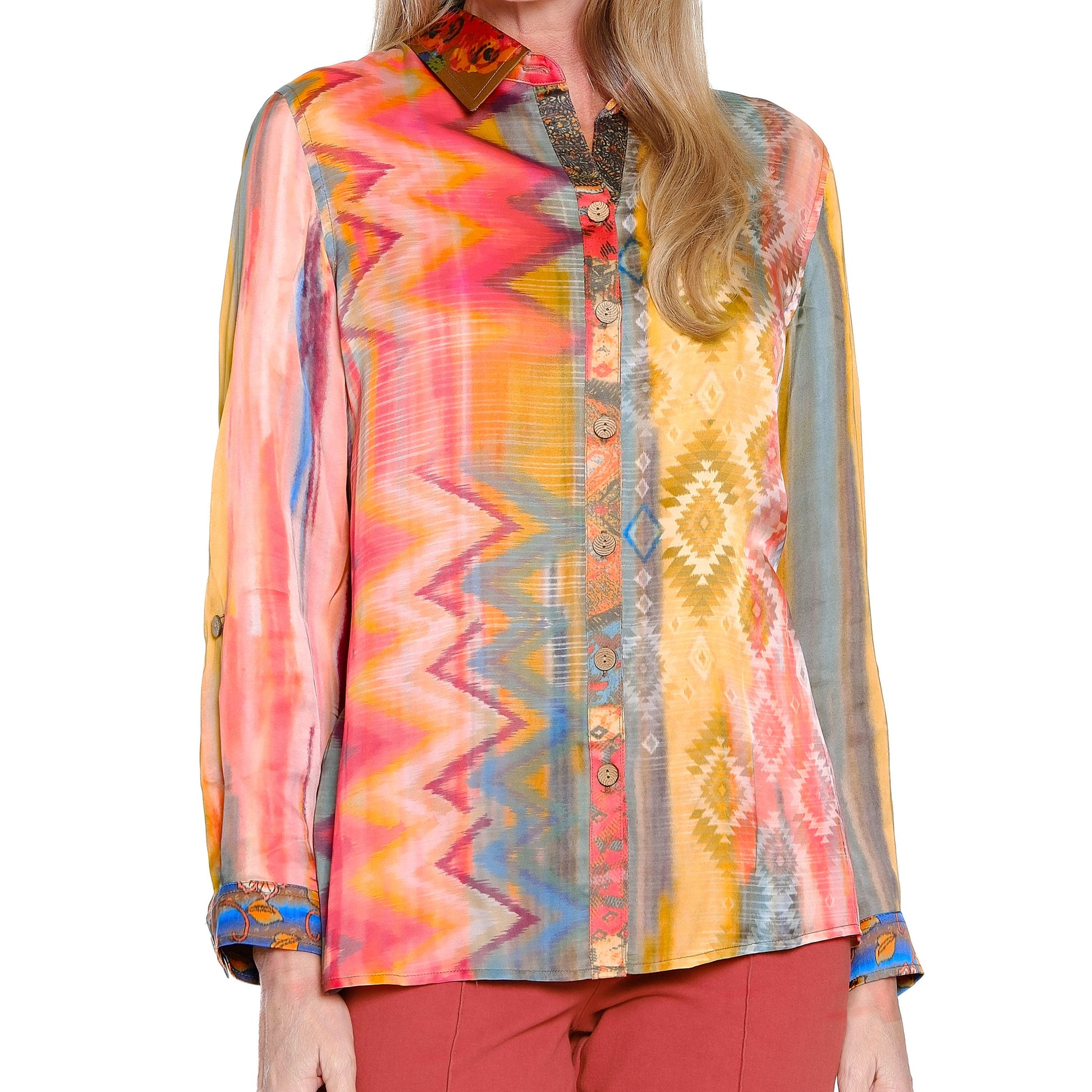 John Mark multi printed button front blouse