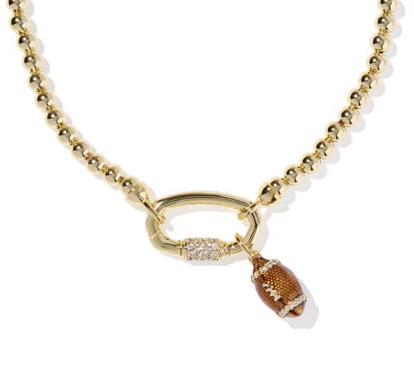 Our signature pendant style in a football shape? Touchdown! The Football Gold Short Pendant Necklace in Orange Goldstone is the perfect way to put the “game” in your game day look. Layer with your favorite chain or wear as a standalone necklace—either way, you’ll be the most stylish fan in the stands.