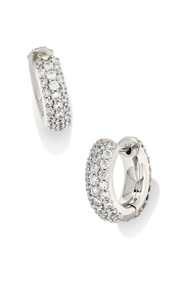 Rhodium The Mikki Pavé Huggies in Rhodium take our everyday essential and elevate them with a touch of sparkle. Featuring a row of gleaming pavé crystals, these petite earrings are the minimalist statement everyone will love.