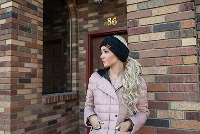 ✔️GREAT LOOK: Get the look of both ear warmer and beanie tail with this trendy ponytail headwrap. With an elastic opening for your hair, wear it with a pony tail or messy bun through the hole. Also features a button closure so that you can close the opening and wear your hair down. Great on women, juniors, ladies, millennials, baby boomers, and girls of all ages.