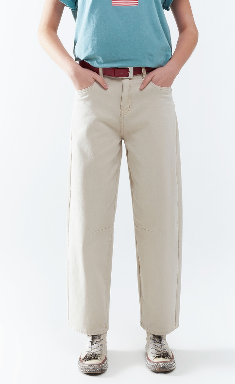 Discover the perfect fusion of comfort and style with these beige stretch barrel leg jeans. Crafted for a relaxed fit with a chic contemporary twist they seamlessly adapt to your everyday life. The flexible stretch fabric not only provides exceptional comfort but also flatters your figure creating a silhouette you'll love. Featuring a distinctive barrel leg design these jeans elevate your outfit effortlessly making you look effortlessly chic. Whether you're running errands or unwinding at home these jeans are the ultimate choice to blend comfort and fashion without compromise. Revamp your wardrobe today!