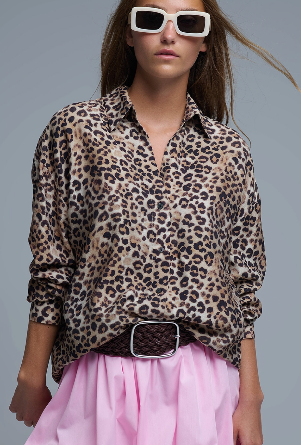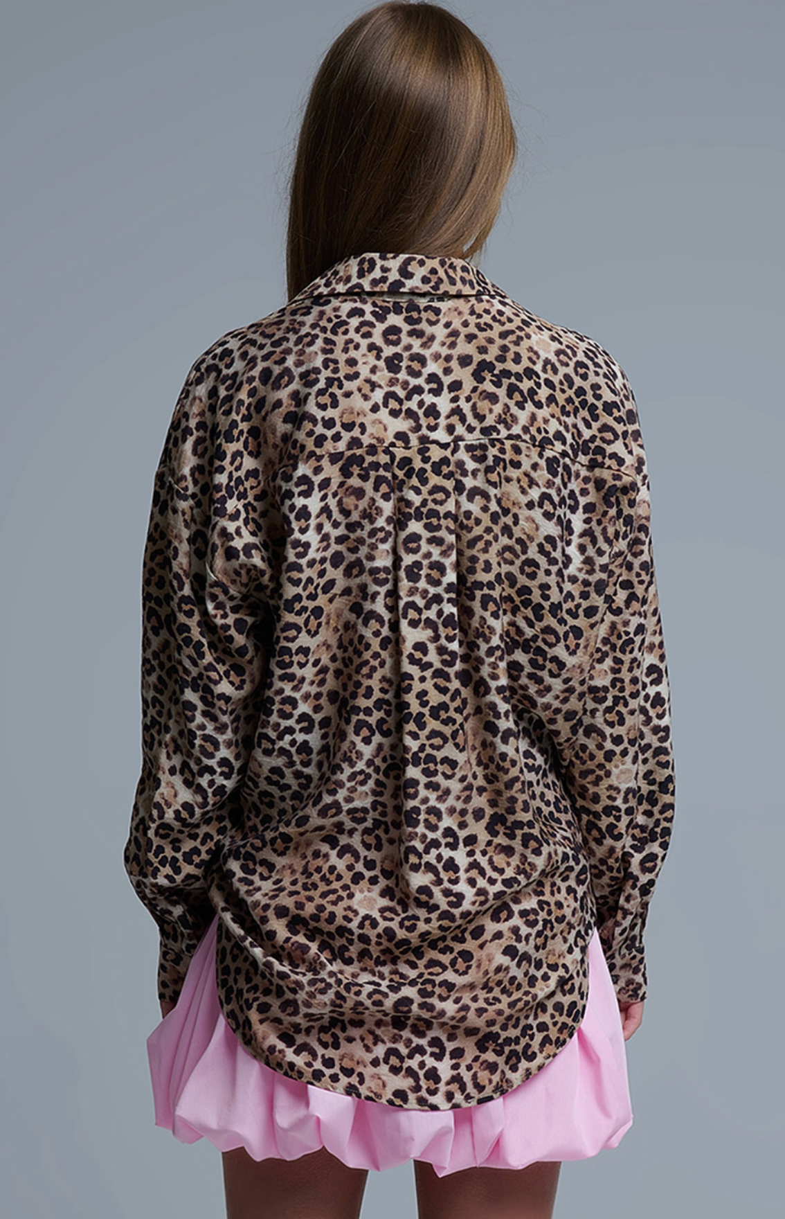 Introducing our stunning oversized button-down shirt designed with a bold and eye-catching leopard print that is sure to turn heads. This shirt boasts long flowing sleeves and a stylish dropped shoulder design for a relaxed modern fit. The classic polo collar adds a touch of sophistication making it perfect for both casual outings and dressier occasions. Crafted from soft breathable fabric this piece ensures all-day comfort while keeping you effortlessly trendy. Make a statement wherever you go with this versatile and fashionable wardrobe essential!