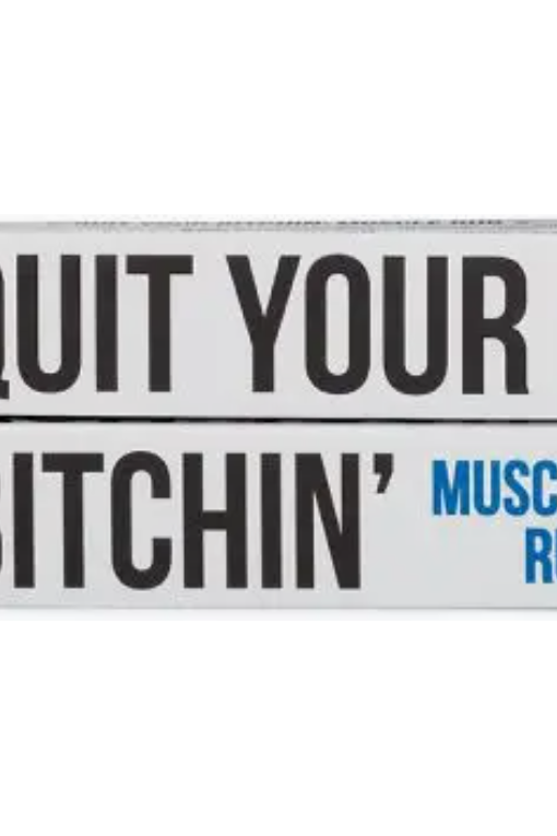 QUIT YOUR BITCHIN’ MUSCLE RUB: Made with Organic Ingredients, Contains Aromatherapy Grade Essential Oils, Non GMO, Palm Oil Free, Petroleum Free, Cruelty Free Product, Made in the USA, Net Wt. .56oz (17g)