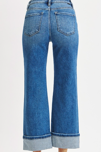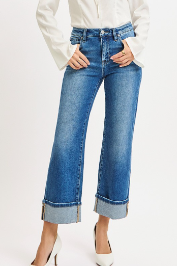 MID RISE CROP STRAIGHT CUFFED JEANS - Rise 9 3/4" | Inseam 26"(after cuff) 29 1/2"(before cuff) in size 3/26 - Model Info: Height 5'8" | Waist 24" | Hips 34" - Model is wearing size 1