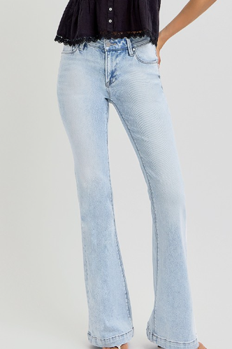 LOW RISE FLARE JEANS - Rise 8'5" | Inseam 32" in size 3/26 - Model Info: Height 5'7" | Waist 24" | Hips 36"