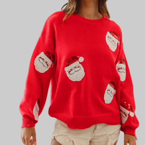 SEQUIN SANTA PATCHES SWEATER CHRISTMAS PULLOVER