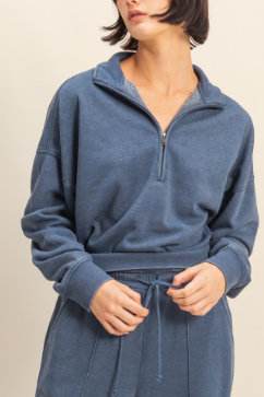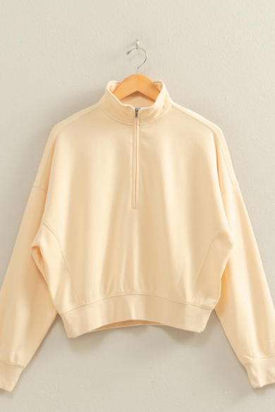 Charm Your Way Through The Day. This Sweatshirt Is Designed With A Casual-Chic Aesthetic, Characterized By A Collar, Easy Half Zipper Closure And Long Sleeves With Drop Shoulders. The Relaxed Fit With Cinched Cuffs And Hem Keeps You Feeling Comfy. 51% Cotton 49% Polyester Model Is 5' 9" Tall, 32" Chest, 23" Waist, 35" Hips And Wearing A Size Small Imported. Designed in the USA